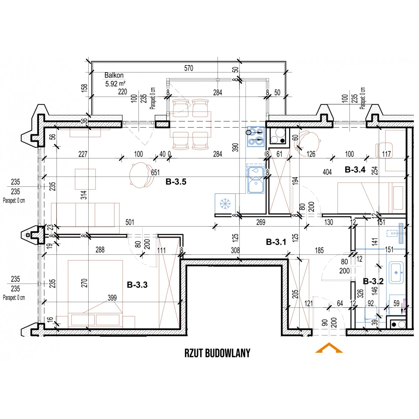 Pow. balkonów/tarasów: 5.92 m2